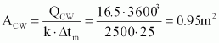The heat exchanger surface A, i.e. the area of the material through which the heat is exchanged from the hot to the cold medium, is established using the heat flow to be utilized, e.g. the actual proportion of the total energy Q as found under Equ. 8.2: