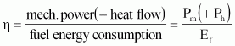 The efficiency of a process is given by the relation between the useful result and the effort made. In the case of an engine the result is the mechanical power (and the heat flow from cooling water/air and exhaust gas if utilized²), and the effort is the fuel energy consumed by the engine.