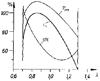 = 1.1 . . . 1.15 the fuel economy is at a maximum; the CO content in the exhaust