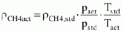Step 2:. density r of CH4 in mixture at actual pressure p and temperature T, calculated on the basis of the table values at standard conditions