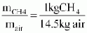 - Stoichiometric air/fuel ratio on a mass basis at which the combustion of CH4 with air is complete but without unutilized excess air