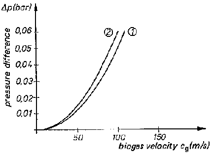 The active pressure difference Dp for the fuel gas flow is established between the pressure in the gas supply pipe before the mixer (i.e. the biogas plant pressure minus the pressure losses caused by the flow resistance in the gas piping system up to the connection at the mixer) and the pressure in the venturi bottleneck where the gas flow joins the airflow.