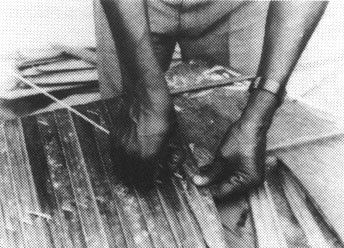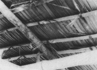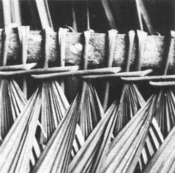 Fijación de Techo de Paja de Hojas de Palmera (Visto desde abajo), Brasil, (Foto: K. Mathéy)