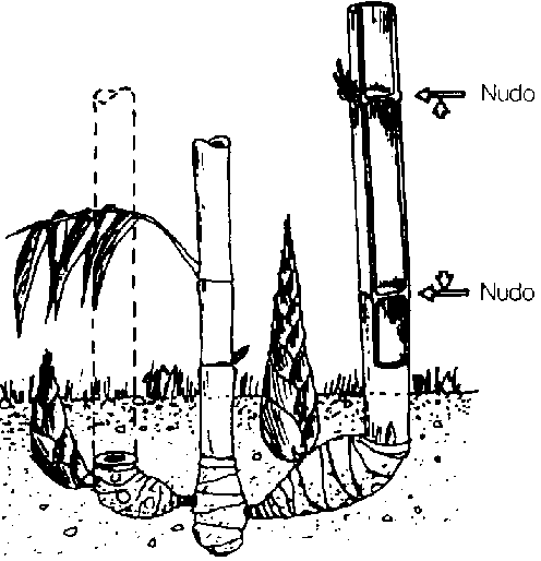 Las cañas deben ser cortadas de 15 a 30 cm. sobre el nivel del suelo inmediatamente encima de un nudo, de modo que no pueda acumularse agua en el fragmento restante, ya que esto podría destruir los rizomas.
