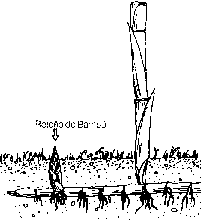 A las raíces del bambú se les llama risomas, que crecen lateralmente debajo del suelo. Las risomas del bambú simpodio se multiplican con pequeñas uniones simétricamente hacia afuera en un circulo desde el cual crecen los retoños de bambú, formando agrupaciones. El bambú monopodio envía sus rizomas en todas las direcciones cubriendo una gran área con cañas ampliamente espaciadas.