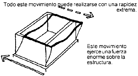 Las ondas sísmicas están compuestas de movimientos horizontales, verticales y de torsión que actúan simultáneamente. Elementos débiles e inflexibles se parten o se desintegran; los materiales elásticos vibran y absorben las ondulaciones; mientras que elementos resistentes y rígidos mayormente no son afectados. La destrucción de los edificios empieza principalmente a causa de muros que se desploman, seguidos de los entrepisos y de los techos, que a falta de soporte caen de inmediato, enterrando a los moradores y sus pertenencias debajo de los escombros. Sin embargo, daños mucho mayores son causados por efectos secundarios de los sismos, como son incendios, desprendimiento de tierras, rotura de represas, epidemias, etc. Una serie de movimientos menores se producen después de sismos mayores, que pueden provocar más colapsos de edificaciones, complicando tremendamente las labores de rescate.