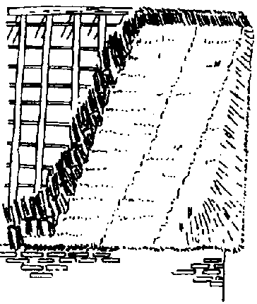 La paja se coloca en capas horizontales de 20 cm de espesor, que se atan con costura, capa a capa, aproximadamente al centro entre el corte y la espiga. Las capas se traslapan, cubriendo y protegiendo las ataduras. El espesor total de la paja es 30 cm. Después de ser fijada, la paja es golpeada con un mazo hacia la atadura. La superficie compacta tiene una inclinación similar a la de las vigas, y solo de 2 a 3 cm de cada atado están expuestos. En la parte superior de cada hilada se deja sobresalir la paja ligeramente, para ser golpeada hacia la atadura conjuntamente con la próxima hilada, eliminando así la huella de la junta.