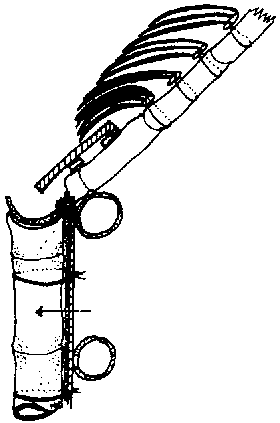Unión 4: pin de bambú atravesando tres barras de bambú, siendo las dos exteriores paralelas.