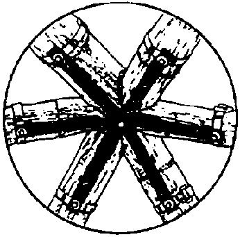 Los Indios Norteamericanos Navajo tradicionalmente construyen sus viviendas (hogans) con este simple método. Un "hagan" es usualmente una casa octogonal cubierta por varias capas de madera rolliza, que son colocados transversalmente a las esquinas de la capa inferior, reduciendo así el vacío con cada nueva capa. El mismo sistema puede ser aplicado para cubrir estructuras triangulares, cuadradas o de otros polígonos, sin necesidad de soportes adicionales al perímetro del techo.
