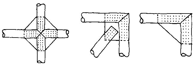 Unión 3: dos "cuernos" al final de la diagonal se insertan en dos huecos de la barra superior. (Desventaja: requiere operarios especializados, tiempo y excluye prefabricación).