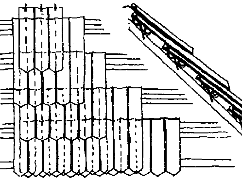 La tejas se unen a los listones con un cordel y una astilla pequeña