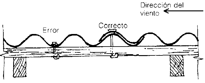 Los traslapes de la cubierta deben tomar en consideración la dirección del viento.