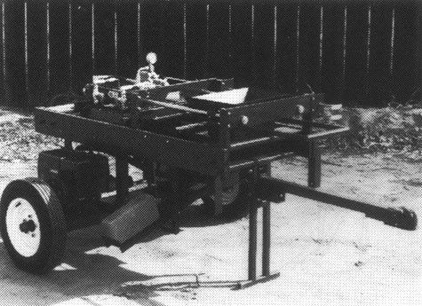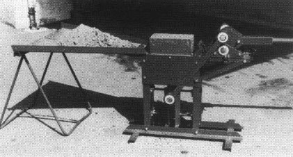 Unidad de producción móvil sobre 4 ruedas, incorpora una criba vibradora, un mezclador de eje horizontal, una tolba y una prensa, todos accionados por un sólo motor diesel. La alimentación de la criba con agua, barro y estabilizador se realiza manualmente, las operaciones restantes funcionan automáticamente (controlado por computadora). Bloques de 29 x 14 x cm., producción de 320 bloques por hora.