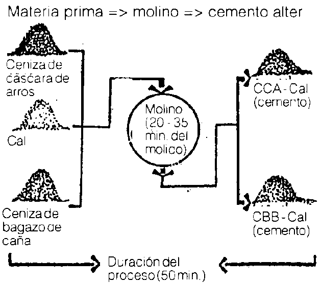 Materia prima => molino => cemento alter