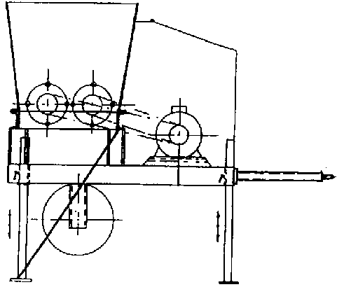 Dos cilindros que giran en sentido inverso con barras de acero macizas pulverizan la arcilla por martilleo; accionado con motor eléctrico o motor Diesel.