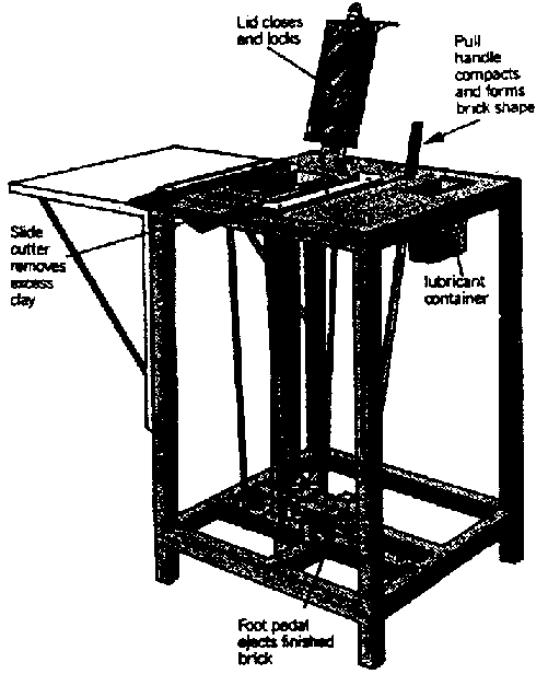 Equipo para moldear tejes y ladrillos de arcilla (con el cual se pueden hacer productos más uniformes, con menos esfuerzos y mayor velocidad, que con los métodos tradicionales);
