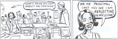 The PAR approach is predicated on reflection. The reflection is introduced as part of the PAR methodology, it transforms classrooms into learning communities in which teachers become more inquiry-orientated, reflect on what they are doing, and decide on ways and means to achieve/improve on what they are doing or what is happening. In PAR-inspired assessments, practitioners themselves engage in the process of developing criteria for evaluating. This enables them to identify the strengths and weaknesses in their own practice. This requires them to: