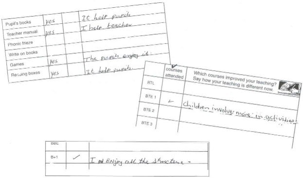 · teachers were involved in the pupils learning achievement surveys (surveys based on natural learning experiences, teacher training and textbook development).