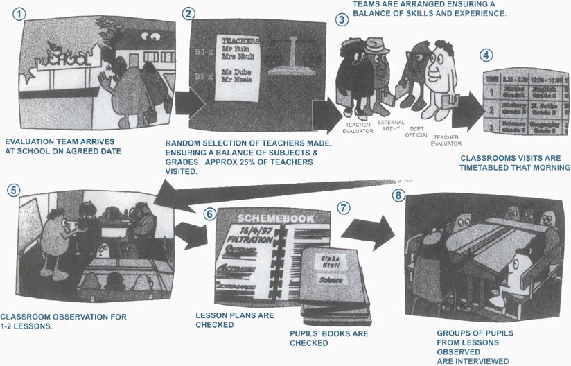 · teacher unions are consulted for permission to appraise teachers in the classroom.· departmental officials work closely with teachers who are engaged in assessing the teaching-learning environment.