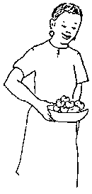 Simon and his sister Ruth went by bus to visit their uncle. As the bus was going over a bridge they heard a loud noise. The driver stopped the bus and got out. A large sack of potatoes had fallen from the roof. It had burst open, and there were potatoes everywhere on the road. Simon and Ruth helped to pick them up and put them back in the sack. The sack was so heavy that two men had to help the driver to lift it onto the roof of the bus.