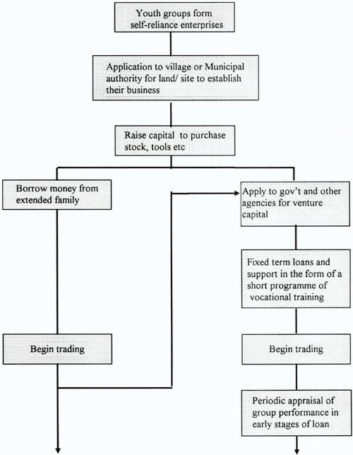The reasons interviewees gave for disenchantment, ranged from a lack of funds 'they are eager to get training but there is no money', poor administration, logistical problems, to the size of groups. Success was measured more in terms of longevity than productive capacity, and the consensus of opinion was that rural groups engaged in agricultural activities had been more successful than those attempting to operate in artisan trades. The major problem for these people was raising the capital to equip themselves with tools.