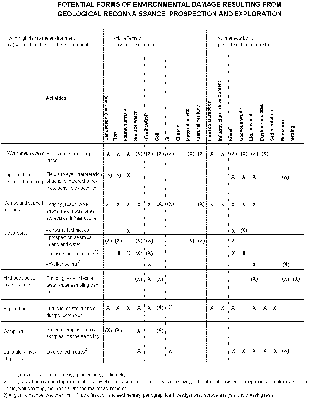This brief describes the environmental consequences and potential means of pollution control in connection with the reconnaissance, prospection and exploration of geological resources.