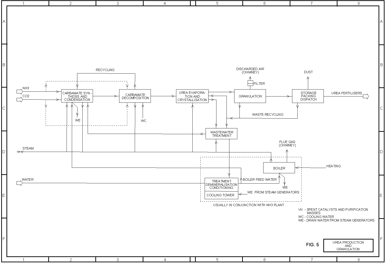 - Wastewater derives mainly from the gas scrubbing operations and contains NH3, CO2 and urea. All wastewater is recycled in the process itself, to keep the addition of water to the process as low as possible and to minimise raw material and product losses. The wastewater which does arise can be simply biologically purified.