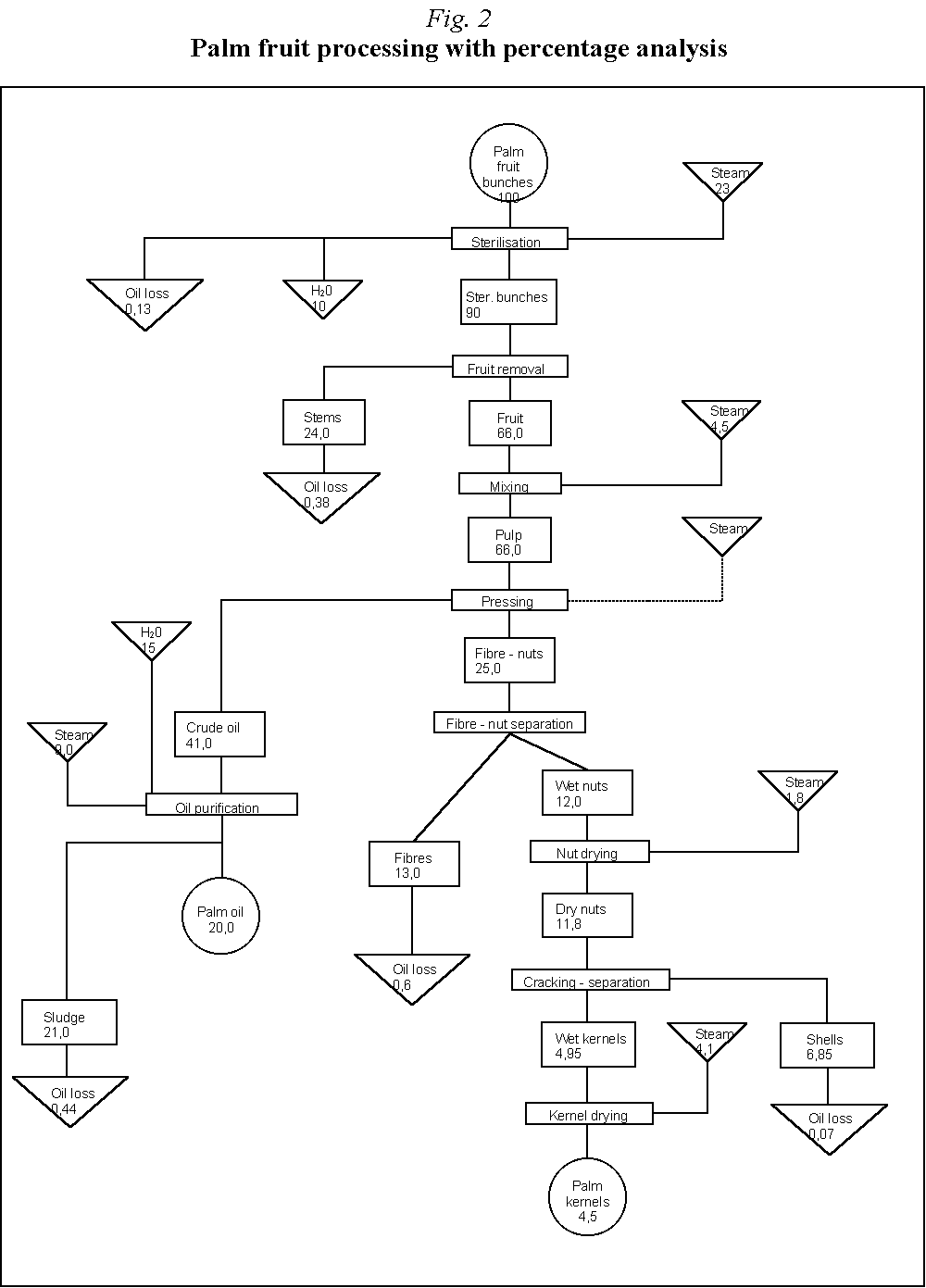 Fig. 2 - Palm fruit processing with percentage analysis