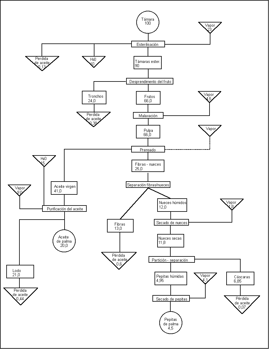 Figura 2 - Elaboración del fruto de la palma con balance de masas