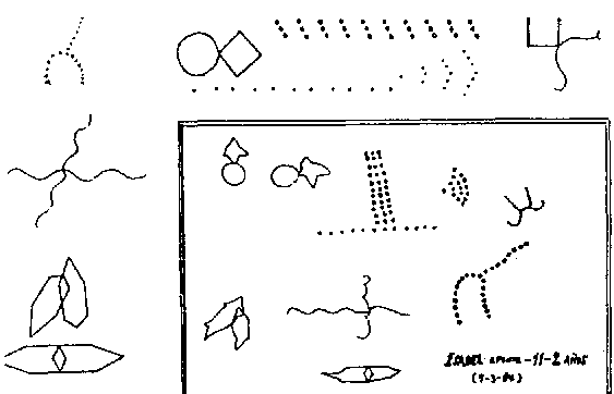 Fig. 2. En el test de Stambak, se debe reproducir sin intervención visual, ruidos por golpeteo siguiendo los patrones rítmicos señalados en los puntos.