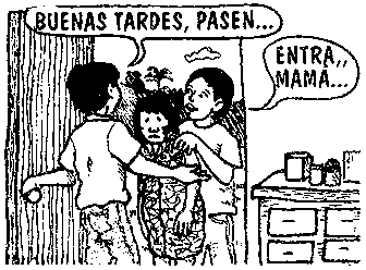 Sanicho diciendo: "Todas esas cosas hacen más caro el producto además que hay muchos intermediarios, en cambio tú compras de un Puesto o Centro de Salud donde el gobierno ha buscado la manera de eliminar todos esos intermediarios para que el medicamento llegue mas barato y a precio justo a toda la comunidad.