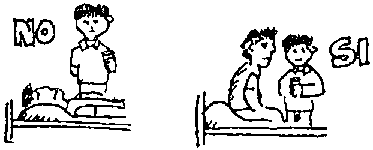 Nunca debemos darle medicamentos vía oral a un paciente echado pues hay peligro de que se ahogue. Debemos invitar al paciente a sentarse o ayudarlo a hacerlo para que reciba sus medicamentos y esperar luego unos minutos antes de volverlo a acostar.