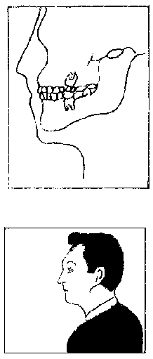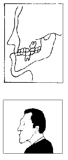 * Luego al examinar la boca; primero lo hacemos de perfil (costado) y luego con la boca cerrada vemos si hay mala oclusión, observemos en el dibujo: