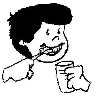 1.- Una vez listo el preparado se indica a los niños que se cepillen los dientes.2.- Luego se coloca a los niños en una hilera y se les entrega una cuchara grande a cada uno,