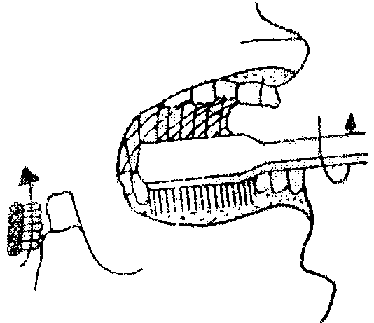 El mango del cepillo debe ser mantenido horizontal y paralelo al arco dental.