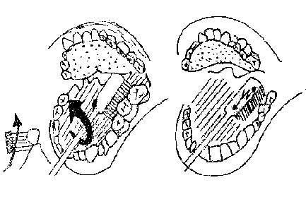 Luego se desliza el cepillo hacia arriba o hacia abajo de manera que las cerdas "barran" las encías.