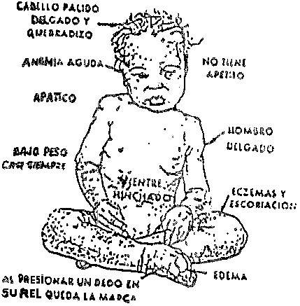 Se produce generalmente en niños mayores de 2 años, cuando no consume suficientes proteínas (carne, pollo, menestras, etc). Se caracteriza por: