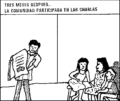 Trabajar en conjunto con la comunidad algunas veces es muy difícil y hasta novedoso, pero sólo basta un poco de paciencia; por ejemplo algo muy importante es ponerse de acuerdo con la población, explicarles nuestro trabajo y para qué sirve, de este modo vamos a estar seguros que estamos brindándoles lo que ellos quieren y además as i se van a enterar de lo que hacemos y podrán ayudarnos, pues cuanto más conozca la población de nuestras actividades de salud, más van a participar con nosotros y nuestro trabajo va tener mejores beneficios