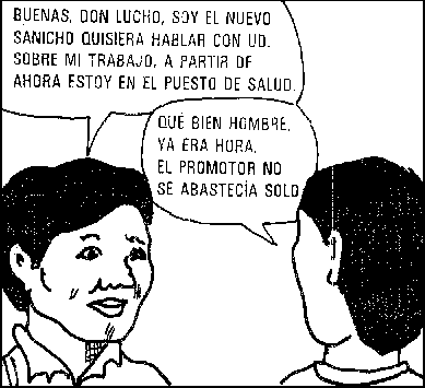 * ALGUIEN QUE COMPARTE. Enseñando a los promotores de salud, las parteras tradicionales a los pobladores las experiencias.