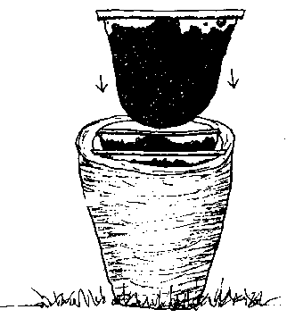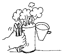 4) Cuando esté lleno el depósito, ponga unas hojas verdes o hierba encina para refrescar el humo y entrapar las cenizas prendidas. Cierre el ahumador.