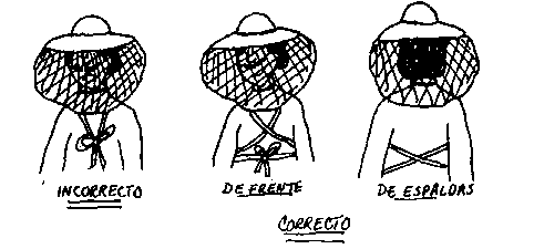 Un velo es lo mínimo de vestimentas protectoras que se debe usar. A veces un abejero con experiencia puede dejar de usarlo, pero para el novicio es una necesidad, y le ayuda a sentirse más seguro.
