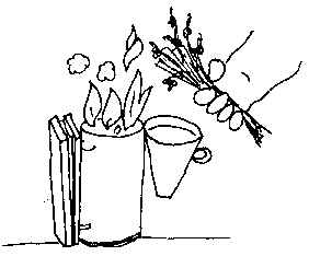 Trabaje el fuelle periódicamente durante su trabajo en el apiario para que el ahumador se mantenga prendido