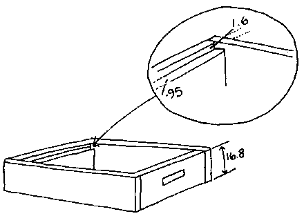 Una colmena de observación (usando madera de 1.9 cm, todas medidas en cm)