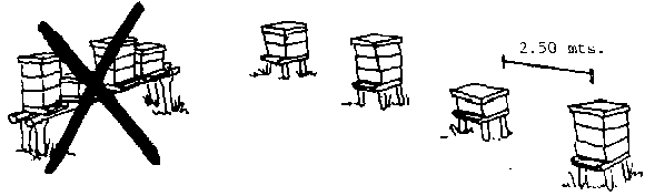 3. El espacio entre las colmenas deberá tener 2.50 mts. 0 mas.