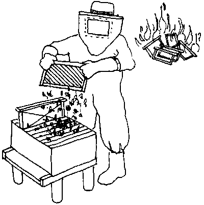 1. Esterilice el equipo que haya tenido contacto con una colonia enferma. Esto prevendrá la transmisión de Loque Americana. Ponga la rasqueta en el ahumador después de trabajar una colonia enferma.