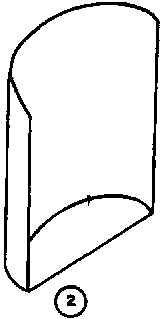 4. Polea: Junte el extremo pequeño de dos corchos utilizando lacre, teniendo cuidado de que los extremos calcen. Introduzca un alfiler recto en el centro de cada corcho, dejando que sobresalga de 3/8" a 1/2". Corte las cabezas. Fabrique dos soportes de polea con zuncho, dándoles la forma que se muestra en el diagrama. Unalos al centro del extremo de la superficie plana, dejando apenas suficiente espacio entre ellos para colocar la polea de corcho. La polea de corcho deberá rotar libremente y no deberá tocar los soportes de la polea. Por esta razón, los extremos de corcho de la polea de corcho deberán ser limados de la manera que se ilustra.