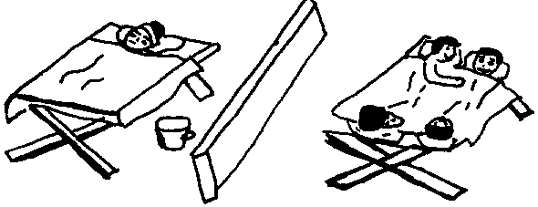 2. Las personas enfermas deben dormir aparte de las sanas. A veces, es suficiente que la persona duerma en otra cama, pero con una enfermedad muy contagiosa es mejor que el enfermo duerma en otro cuarto. (Personas con tuberculosis nunca deben dormir en el mismo cuarto con otra gente)