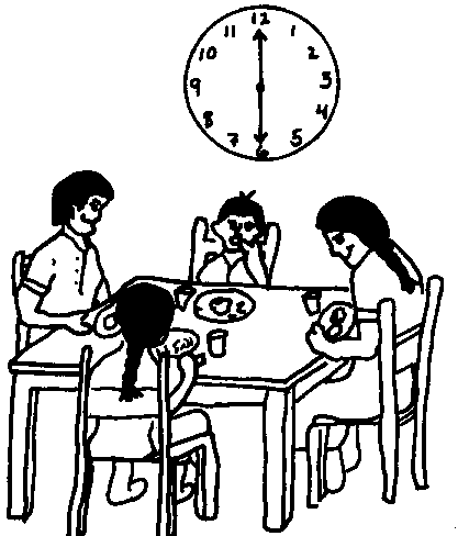 - Usando los dibujos, cada niño puede planificar una comida variada y describirla a sus compañeros.
