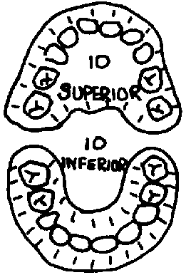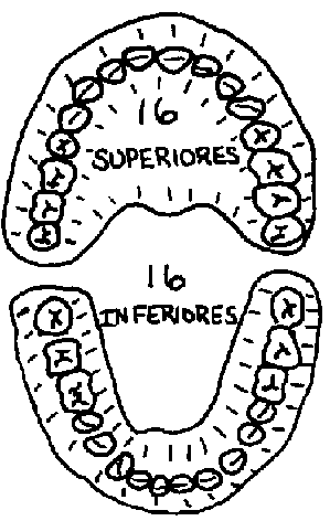 | María -22 dientes y 2 espacios | Juana - 28 dientes | Eloy -20 dientes y 12 espacios |