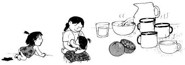 · Desde el primer momento que el niño presenta diarrea tenemos que darle abundantes líquidos como: leche materna, caldos, sopas, jugo de frutas, cocimientos de arroz.